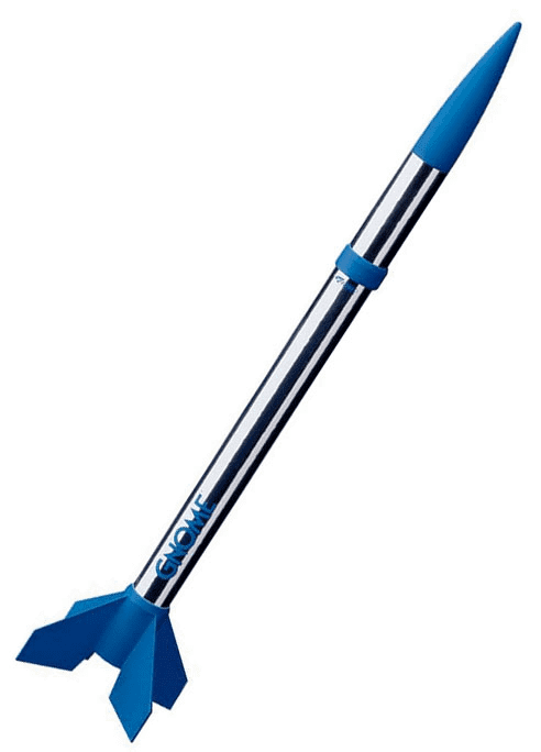 The Estes Gnome is chrome at its hottest! Standing just a little over 10 inches tall with super shiny chrome and sapphire blue colors, this is one great looking, mini engine powered cloud chaser that can reach altitudes of 800 feet. Recovery is reliable with its orange colored streamer for easy tracking after a superfast flight!