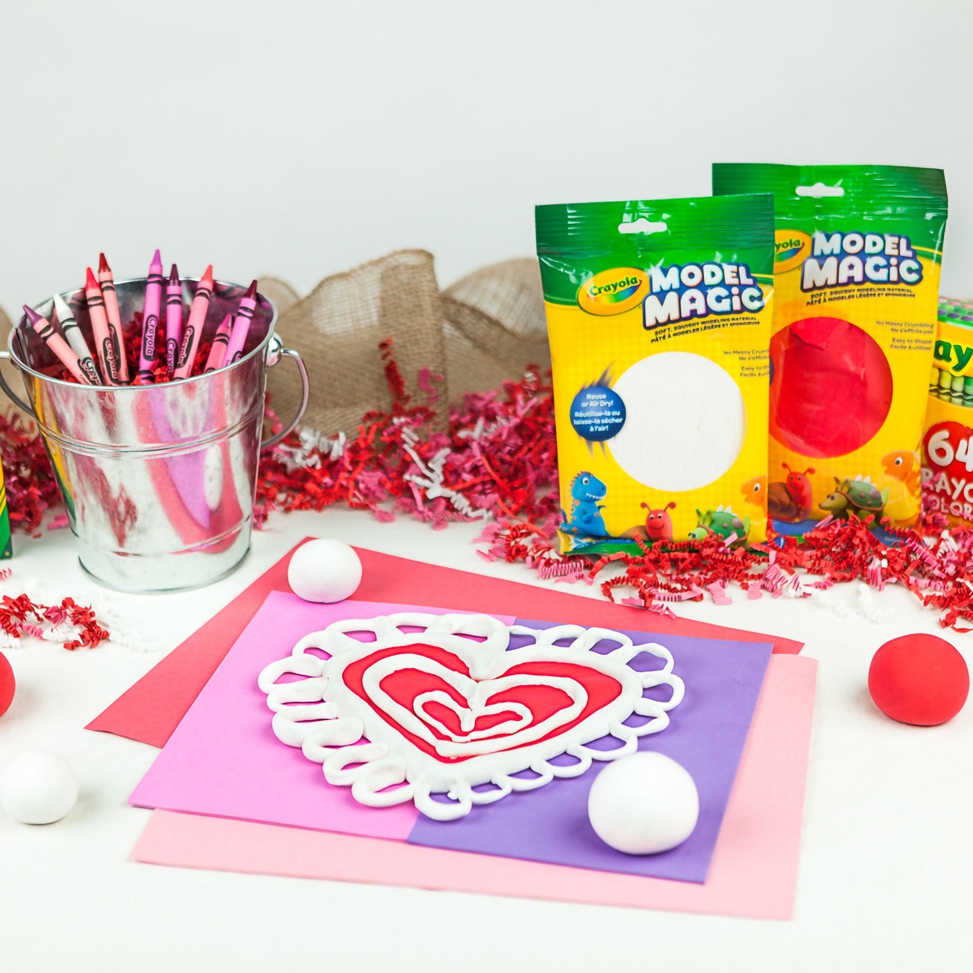 CRAYOLA-Soft, squishy modeling material! Includes 4 ounces of red Model Magic. Features: lightweight and spongy, will not crumble or stick to skin and clothing, fun to decorate, and great for projects at home or school. Safe and non-toxic. Do not allow product to freeze. Do not store product over 120 degrees fahrenheit. Conforms to ASTM D4236. Made in USA.