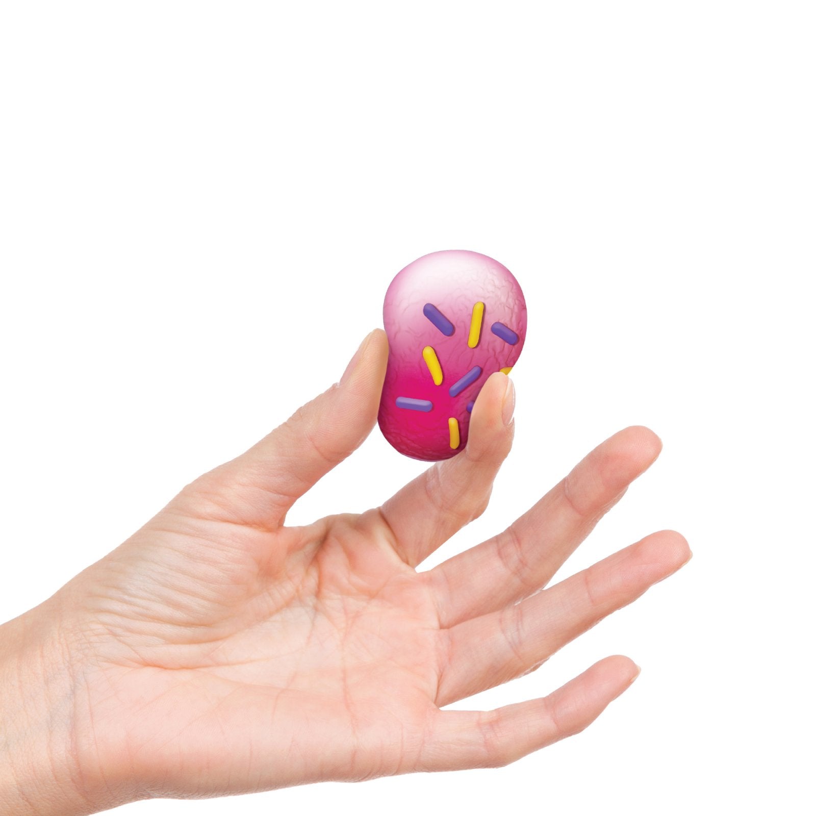 Bring the morning fun with a box of teenie donut holes that are yummy enough to SQUISH! These sensory toys come with Groovy Jelly, Powder Crunch, and Cool Cream fillings for a satisfying Nee Doh squeeze. Topped with sprinkles or powdered sugar-like coatings, each donut hole has a cakey texture.