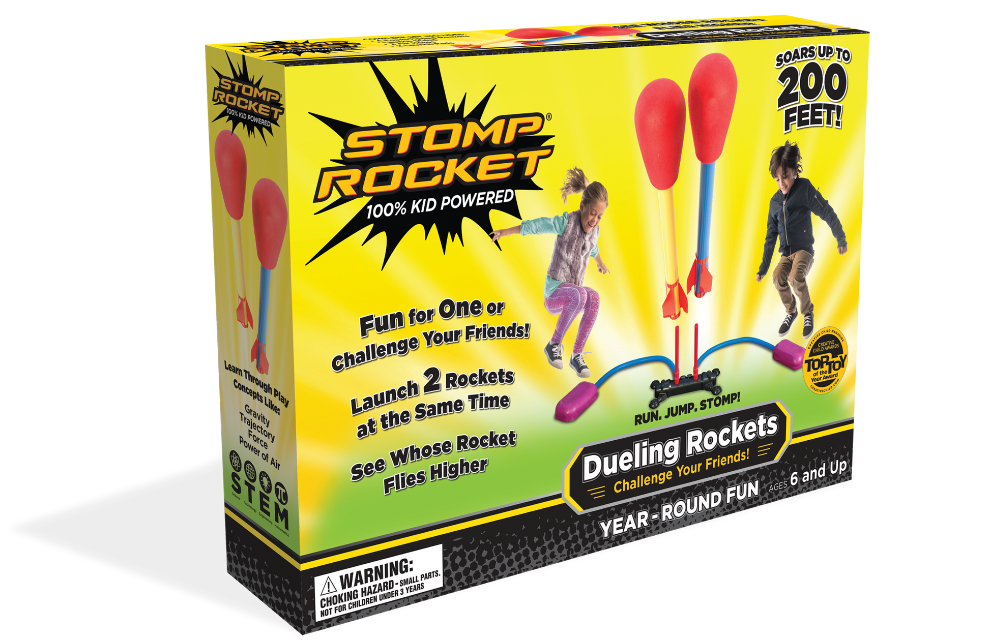 Forget the struggles of turn-taking and stomp into simultaneous rocket-launching action with the brilliant Dueling Stomp Rocket set.