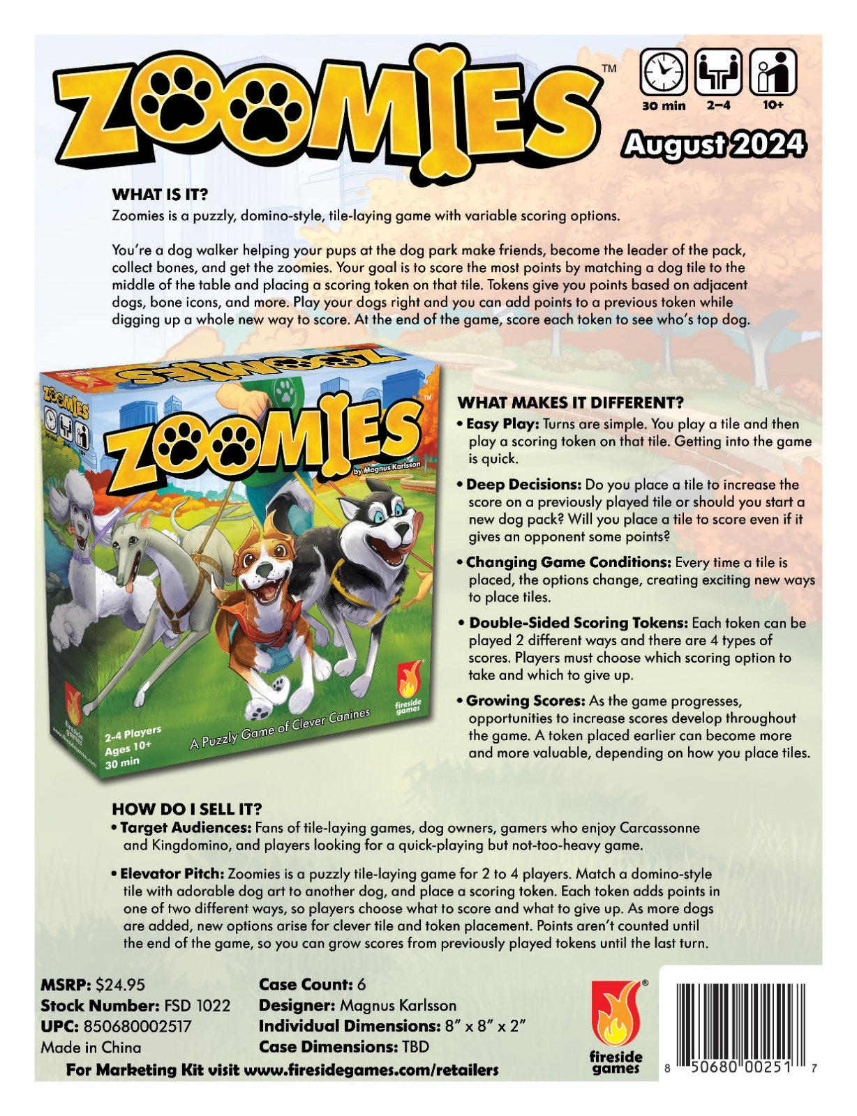 Zoomies is a puzzly, domino-style, tile-laying game with variable scoring options.
